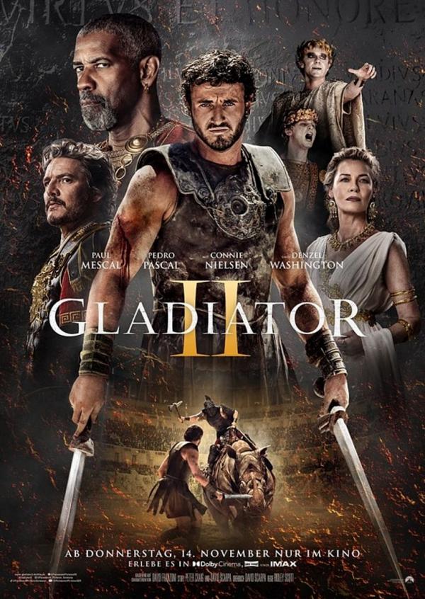 Darsteller: Paul Mescal, Denzel Washington, Connie Nielsen, Pedro Pascal, Fred Hechinger, Joseph Quinn, Tim McInnerny, Derek Jacobi u.a.